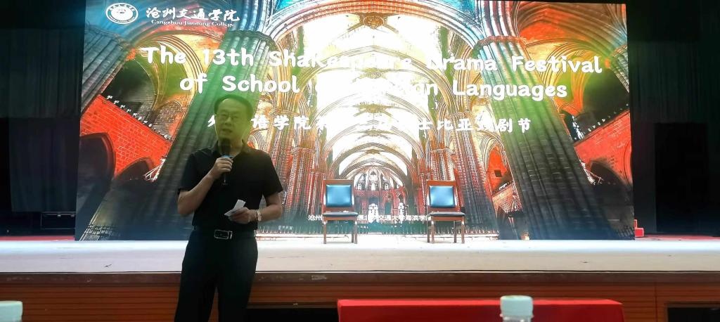 演出结束后,评委们对所有参演剧目进行了评选。商务英语教研室马容教授对整场演出作了精彩点评,马容教授首先对舞台上同学们的倾心演绎表示钦佩与感动,表达了对莎士比亚戏剧节未来的期许,指出学生们今后可以在英文语音语调和表演感染力、角色表现力上继续提升,鼓励同学们继续追随莎士比亚等先贤的脚步,演绎人生百态,更好体验语言的魅力。