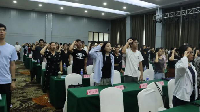 渤海理工职业学院张建昌老师作为学员代表进行领誓,引领全体学员共同举起右拳,重温高校辅导员誓词。在这一庄严时刻,我们共同见证了辅导员们对职责的坚守与对使命的担当。
