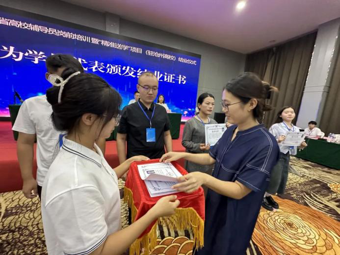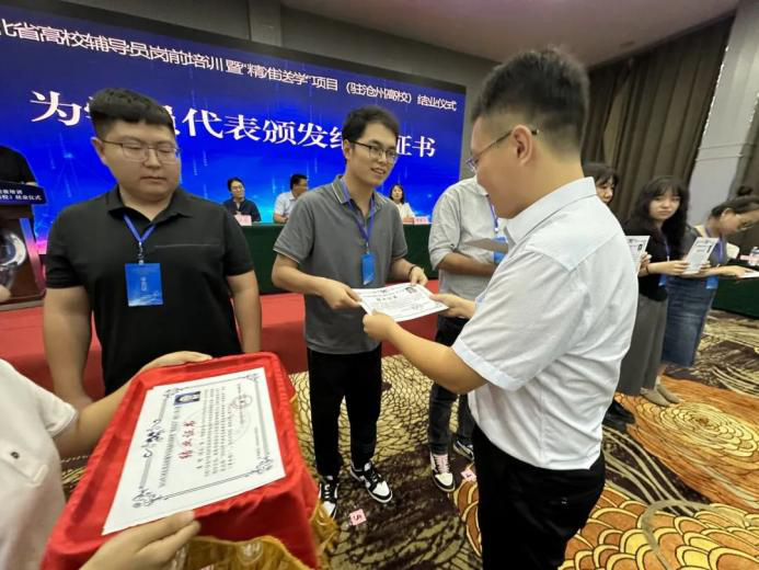 渤海理工职业学院学生处处长吴杰朋、北京中医药大学东方学院学生处副处长张晓晨为学员代表颁发结业证书。